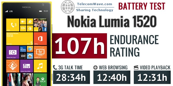 The massive battery, light-weight Windows Phone OS and power-efficient display were made to count in video-playback and web browsing test. They surely helped the Lumia 1520 achieve an amazing score despite the huge estate to light up. Talk time and the overall stand-by endurance are great too thus the 107h top-notch rating is no surprising.
